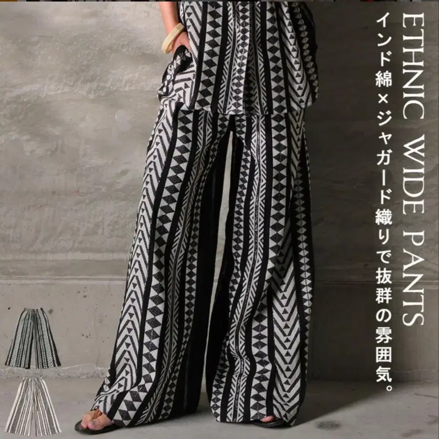 ROPE 블랙 화이트 스트라이프 와이드 팬츠