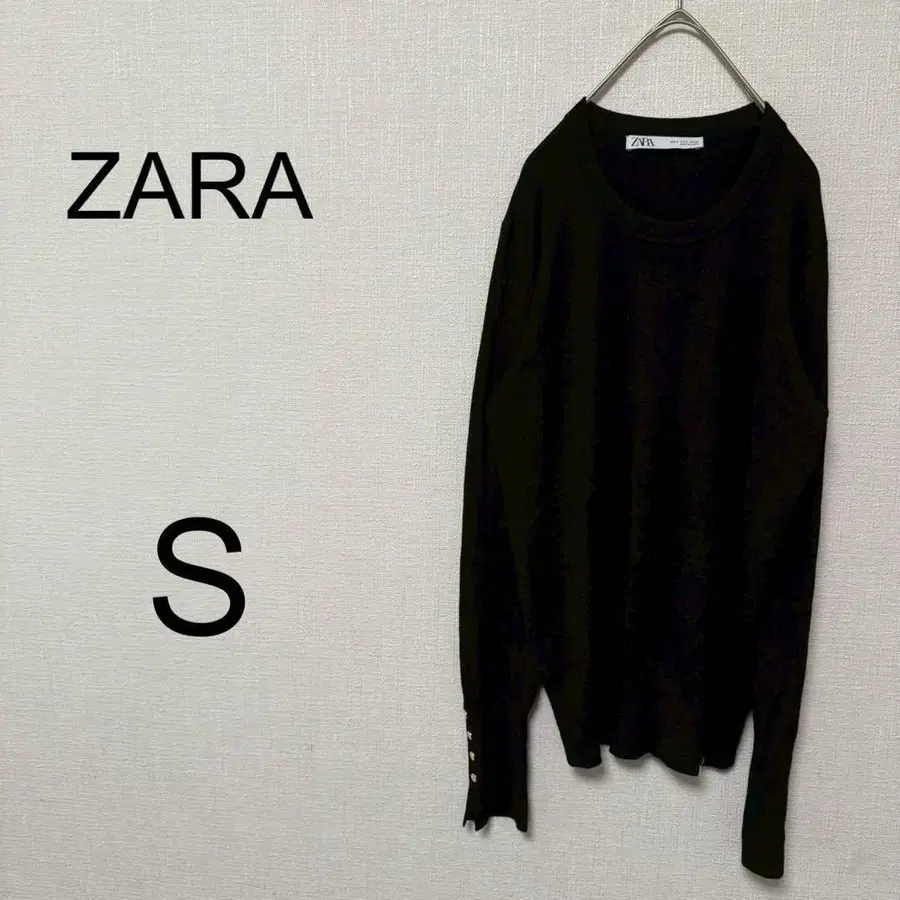 자라 ZARA 긴팔 상의 [ S ] 소매 버튼 레이온 혼방 블랙 라운드넥