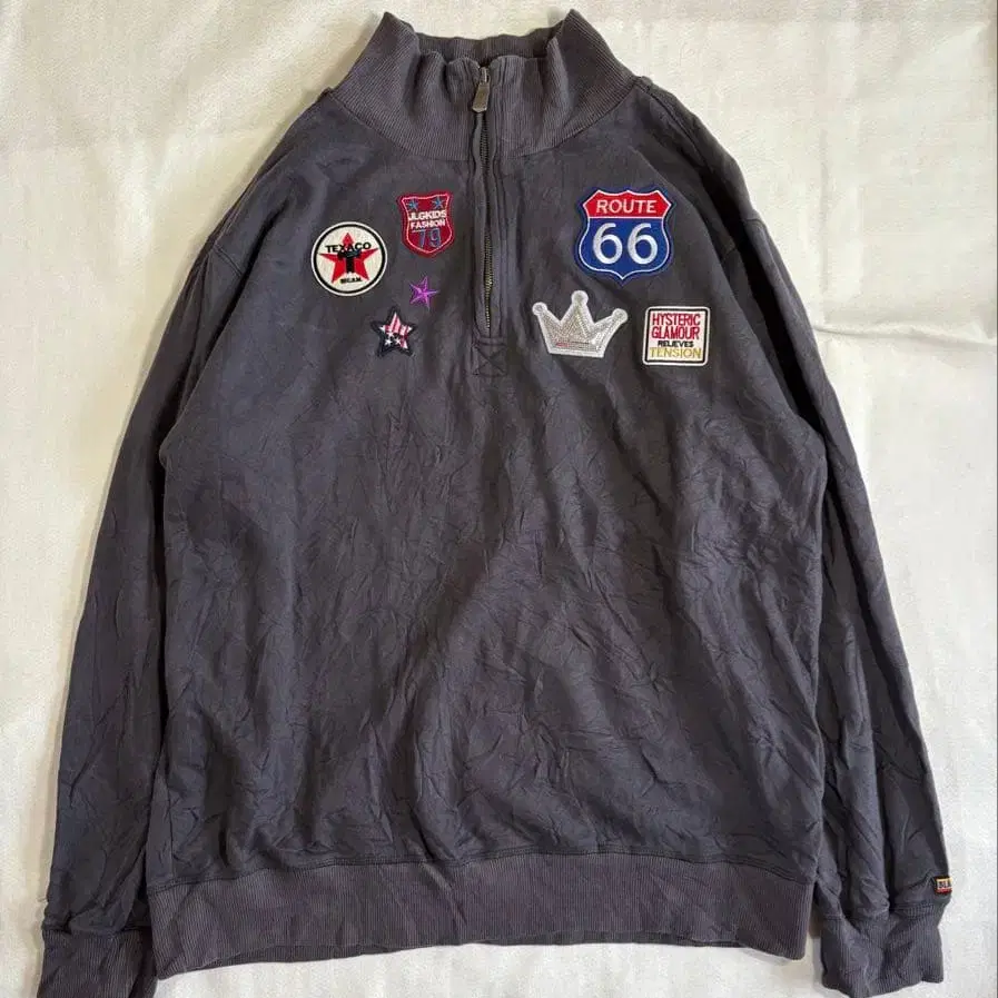 레어 하프 지퍼 자수 패치 y2k 헤이세이 갸루 그런지 빅 실루엣