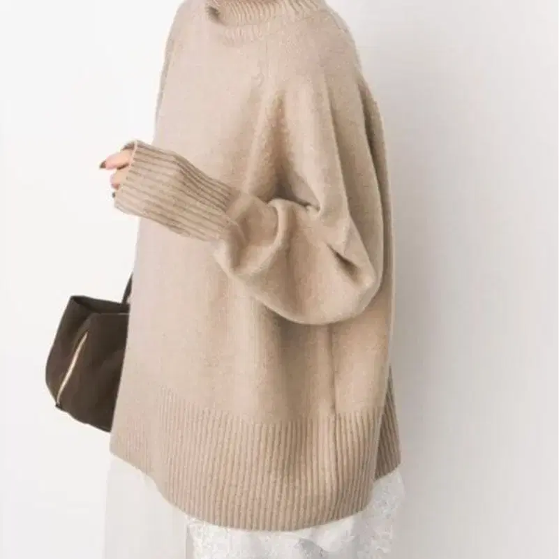 Spick and Span 울 캐시미어 래글런 터틀 니트 베이지