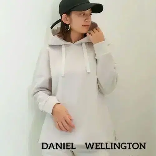 택 포함 새상품 다니엘 웰링턴 로고 베이지 후드 부착 후드티 L