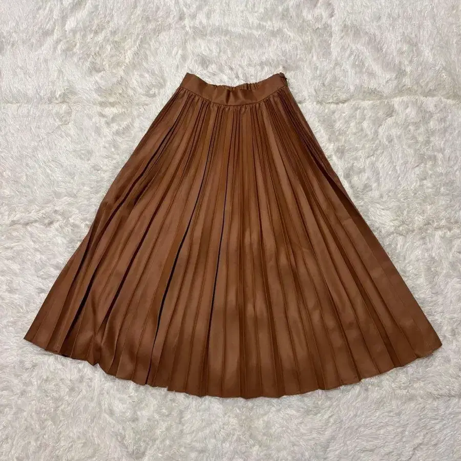 카멜 색상의 플리츠 롱 스커트입니다. 광택이 있어 파티나 식사 모임 등에도 추천합니다.
