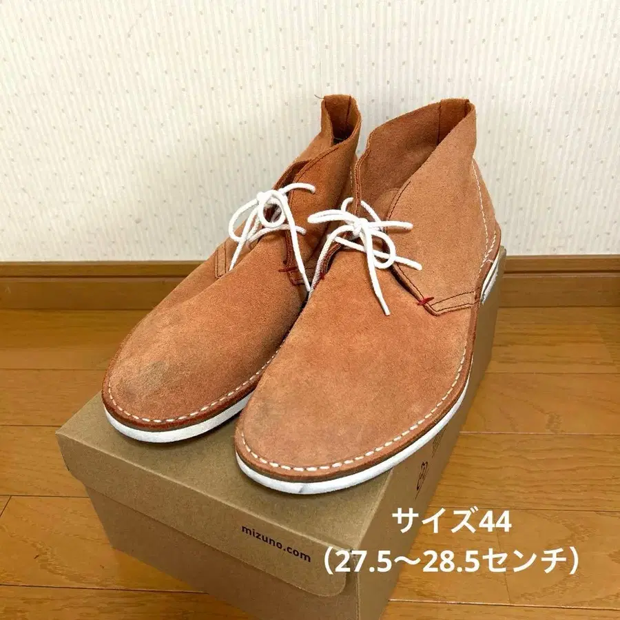 색상이 마음에 들어 구매 후 몇 번 사용했지만, 사이즈가 커서 자택 보관했던 스웨이드 신발입니다. 연한 오렌지색으로, 누구나 멋스럽게 신을 수 있을 것 같습니다. ※ 사이즈는 44 찾아보니 일본 사이즈로는 27.5에서 28.5 신었던 본인은 평소 27에서 27.5 사이즈입니다. 약간의 얼룩 등이 있으니, 사진을 확인하시고 구매 부탁드립니다.