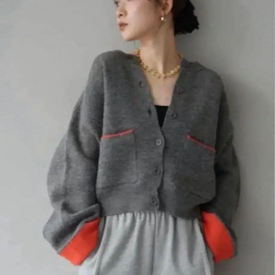 바이컬러 오버 니트 가디건 차콜 lumier 같은 형태