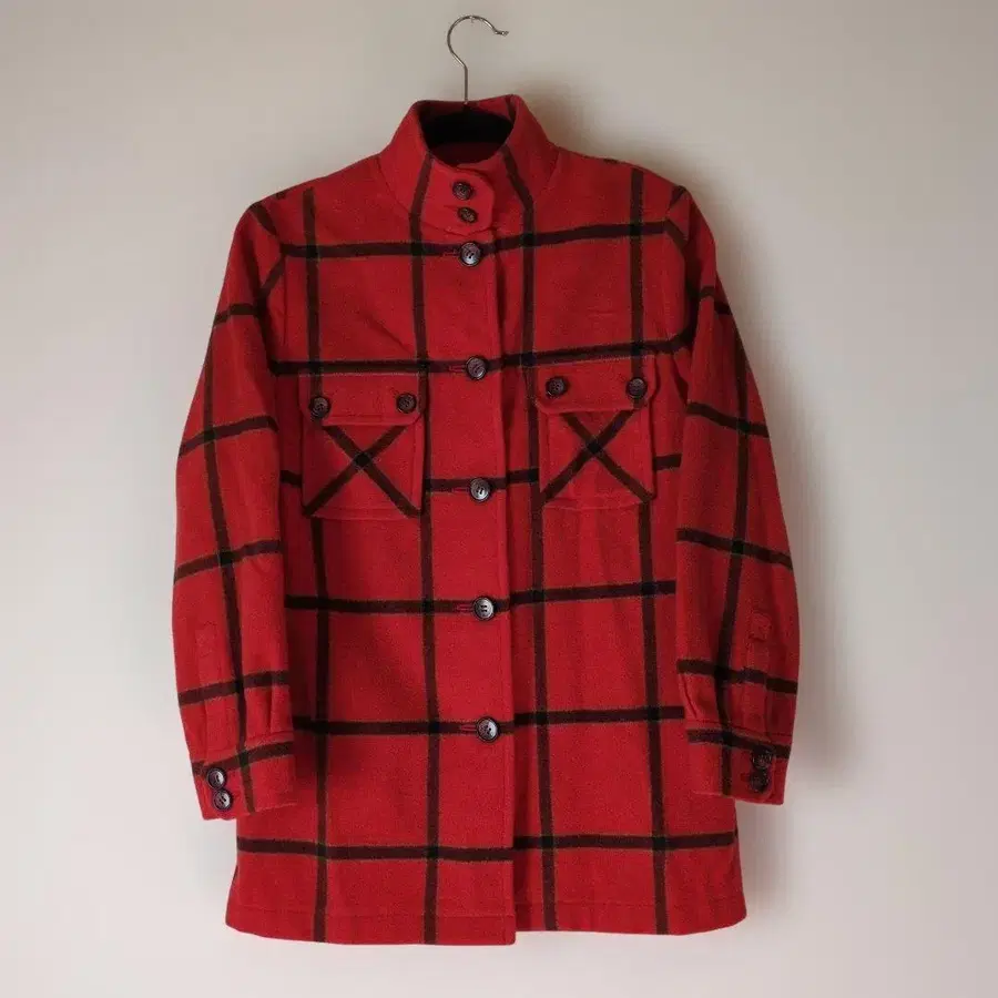 구제 의류 체크 무늬 피코트 빨간색 체크 무늬 스탠드 카라 모 93%