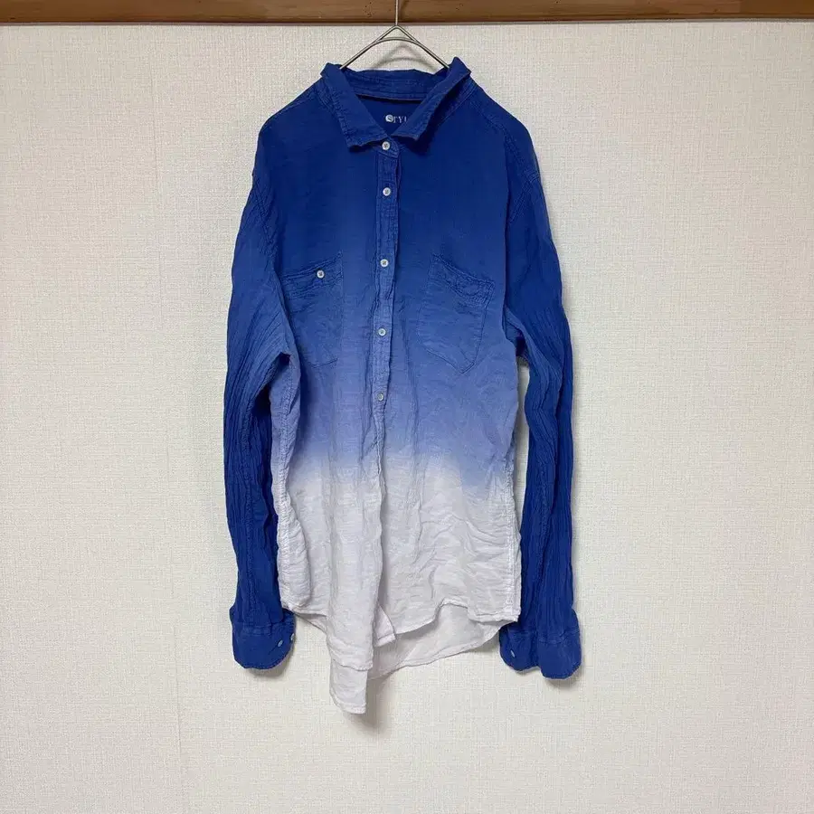 파랑에서 화이트로 이어지는 그라데이션 디자인의 100% 코튼 셔츠, XL 사이즈. 뒷면 화이트 부분에 옅은 얼룩이 있지만, 얼룩 제거제로 깨끗하게 지울 수 있는 정도의 얼룩입니다.