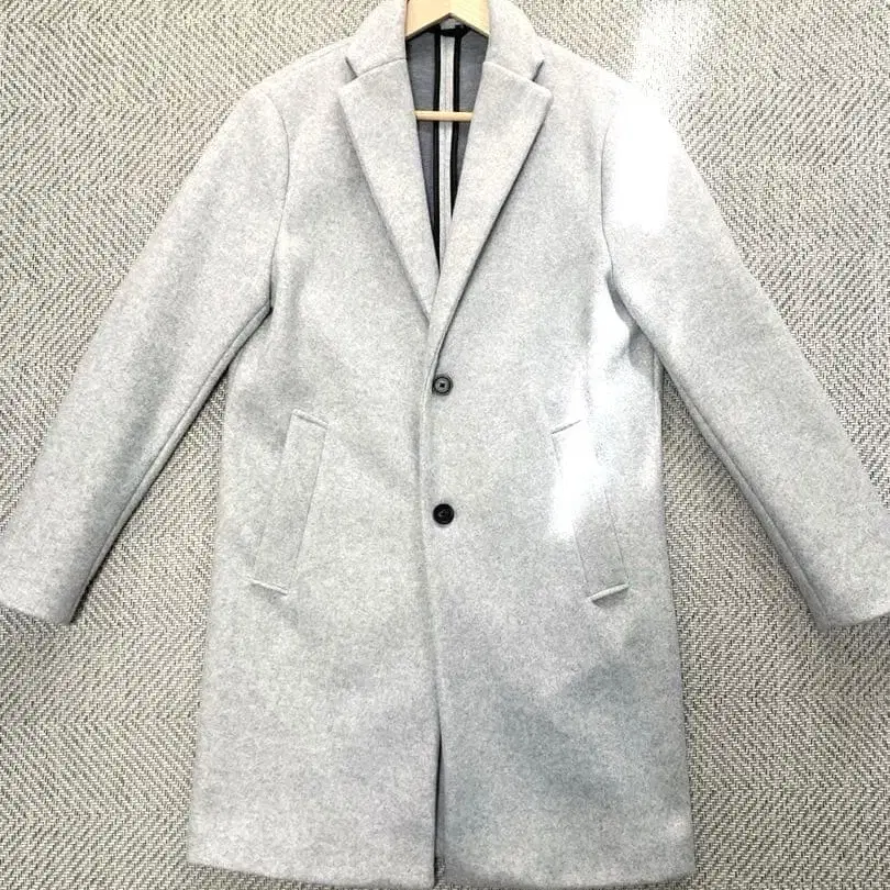 라이트 그레이 체스터 코트, 심플하고 스타일리시한 디자인.