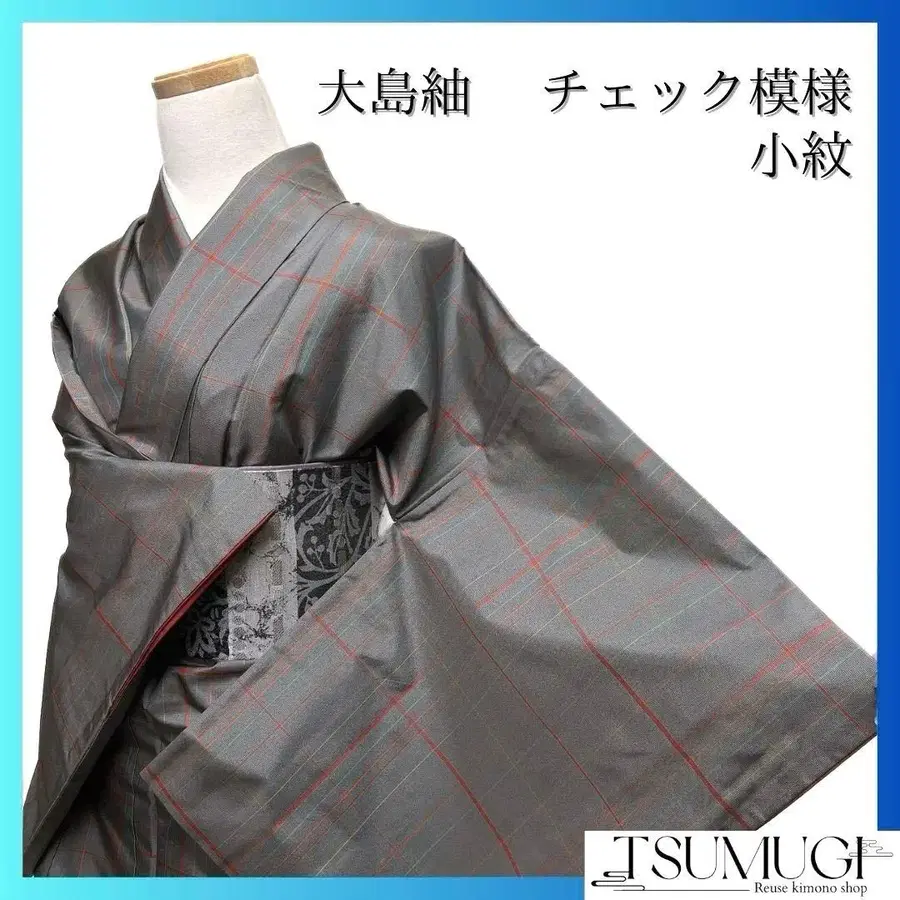 오시마 명주 체크 무늬와 격자가 짜인 코몬입니다.