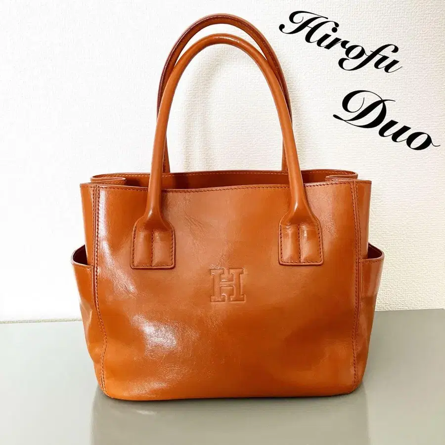 히로후 토트백 로고 엠보 카멜 브라운 포켓 듀오