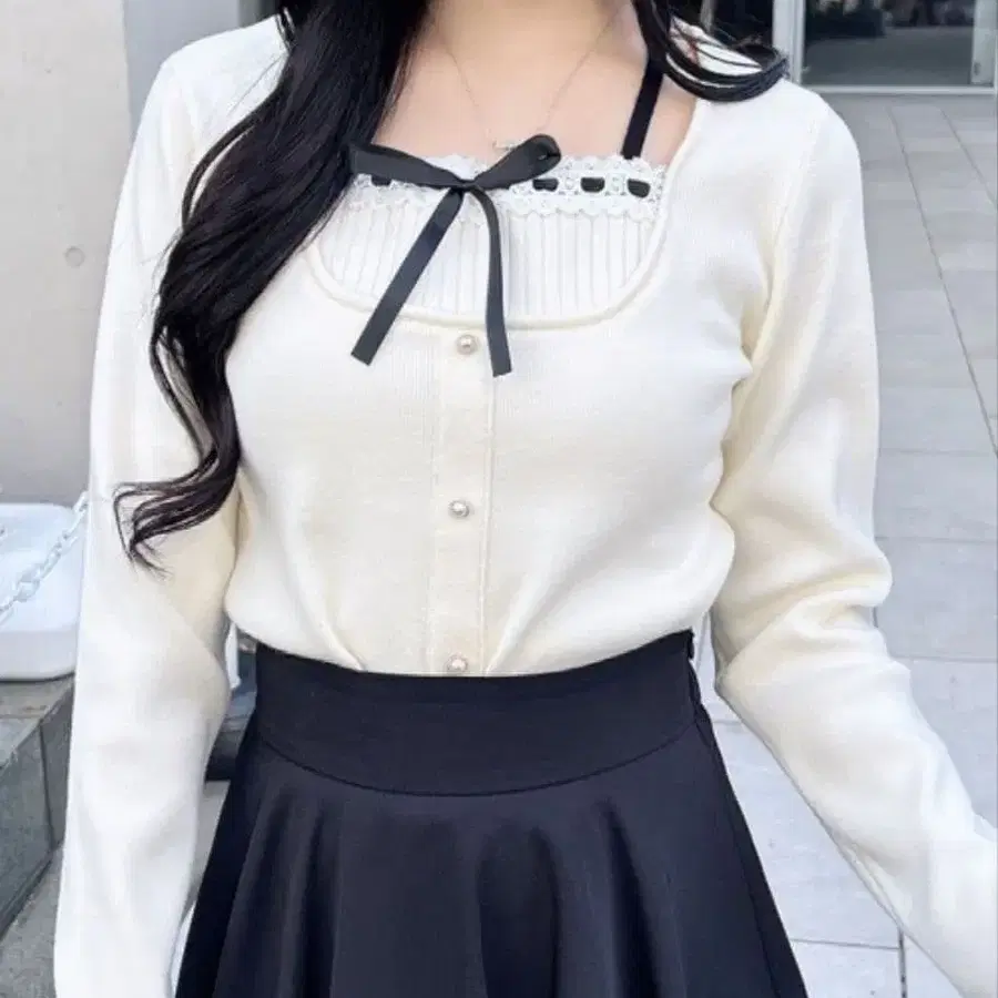 자동 번역되었어요. 원문보기잉그 프론트 리본 리브 절개 니트 화이트