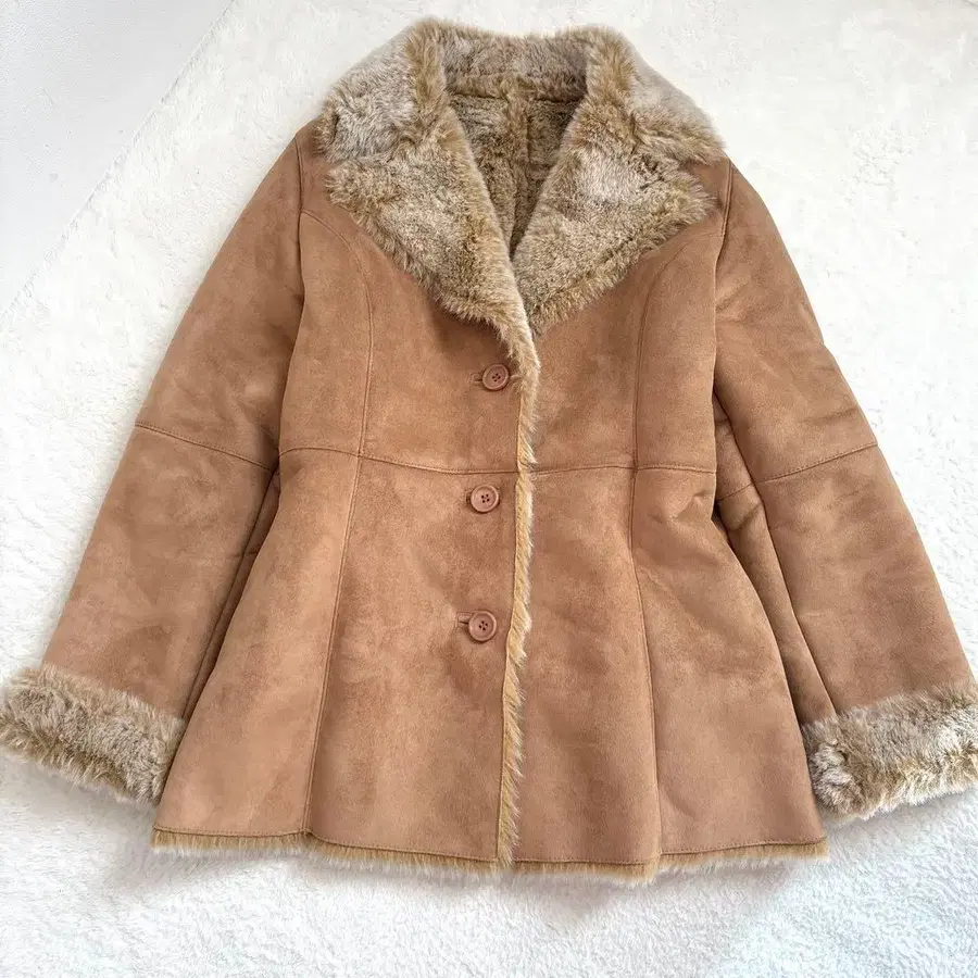 [ 새상품급 ] 스웨이드 느낌 페이크 무스탕 코트 베이지 퍼