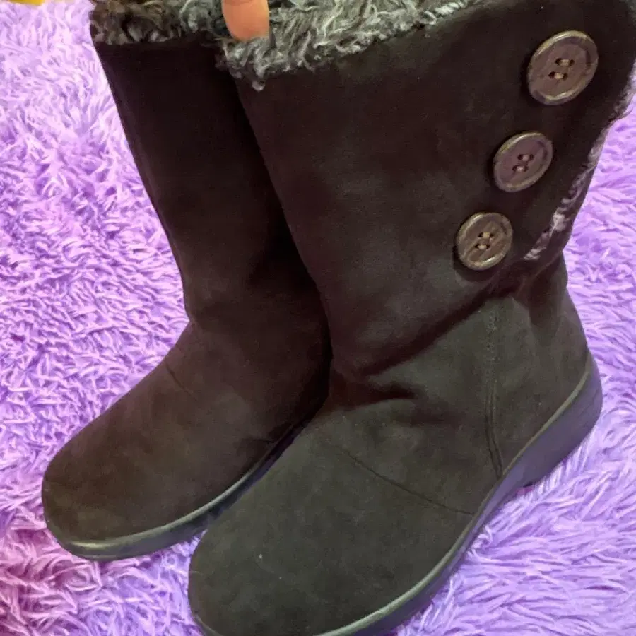 사이드의 큰 버튼과, 입구의 복슬복슬한 퍼가 매우 귀엽고, 디자인성도 뛰어납니다. 미끄럼 방지 밑창 패턴도 눈길이나 비 오는 날에 안심입니다.