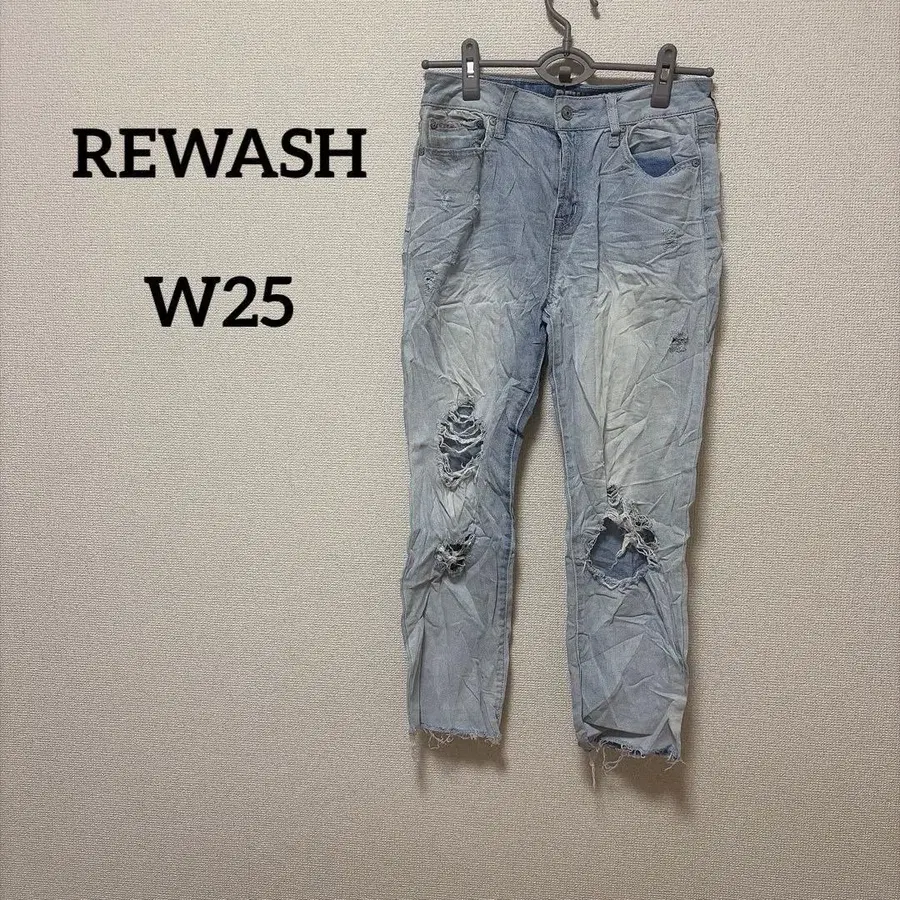 자동 번역되었어요. 원문보기데미지 가공이 특징적인 라이트 블루 REWASH 데님 팬츠, W25 사이즈.