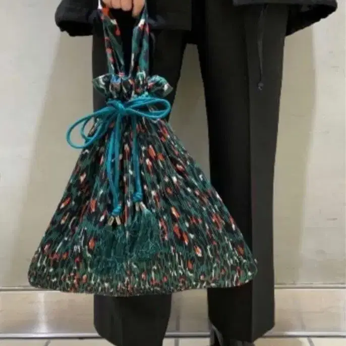 캐주얼한 복조리형 숄더백, 태슬 포함으로 개성 있습니다.