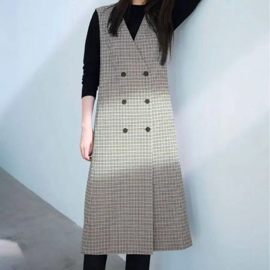 가을/겨울 무드를 더하는 뉴앙스 컬러의 체크 무늬 베스트. 코디의 폭을 넓혀주는 롱 베스트는 오버롤 스커트처럼 연출할 수 있는 2WAY 사양. 노카라 디자인이 깔끔한 네크라인을 연출하며, 더블 버튼의 프론트 디자인이 코디의 악센트가 됩니다. 가볍게 걸치기만 해도 단정해 보이면서 체형 커버에도 도움이 되는 편리한 아이템입니다.