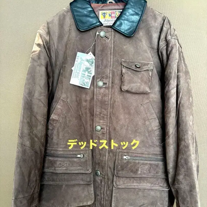 데드스탁 상태의 ALPENROSE사 제조, 스웨이드 x 소가죽 헌팅 자켓입니다. 사이즈 표기는 F (프리 사이즈)이지만, 남성용 L에서 XL 상당입니다. 저는 평소 L 사이즈를 입는데, 안에 두꺼운 플리스를 껴입으면 딱 맞습니다. 상태는 택 포함 미사용이지만, 오른쪽 어깨 부근에 일광화상으로 인한 색바램이 있습니다. (사진 4장 참고) 그 외, 빈티지 가죽 제품이므로 곳곳에 색상 불균일이 있지만, 이해 부탁드립니다. 어깨 너비 약 53cm 가슴 너비 약 60cm 소매 길이 약 57cm 기장 약 73cm 치수 측정은 비전문가이므로 약간의 오차는 용서해 주십시오. - 색상: 브라운 - 소재: 스웨이드 - 옷깃: 소가죽 - 포켓: 전면 포켓 있음 - 지퍼: YKK제 지퍼 방문해 주셔서 감사합니다.