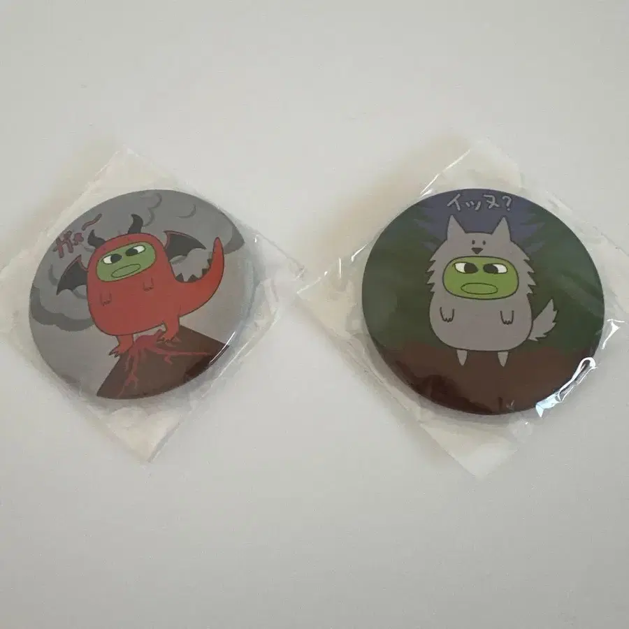 악마와 늑대 캐릭터가 그려진 캔뱃지 세트. - 디자인: 악마와 늑대 캐릭터 - 색상: 빨간색과 그린 - 사이즈: 직경 약 5cm - 소재: 플라스틱 - 패키지: 미개봉 상태 방문해 주셔서 감사합니다.