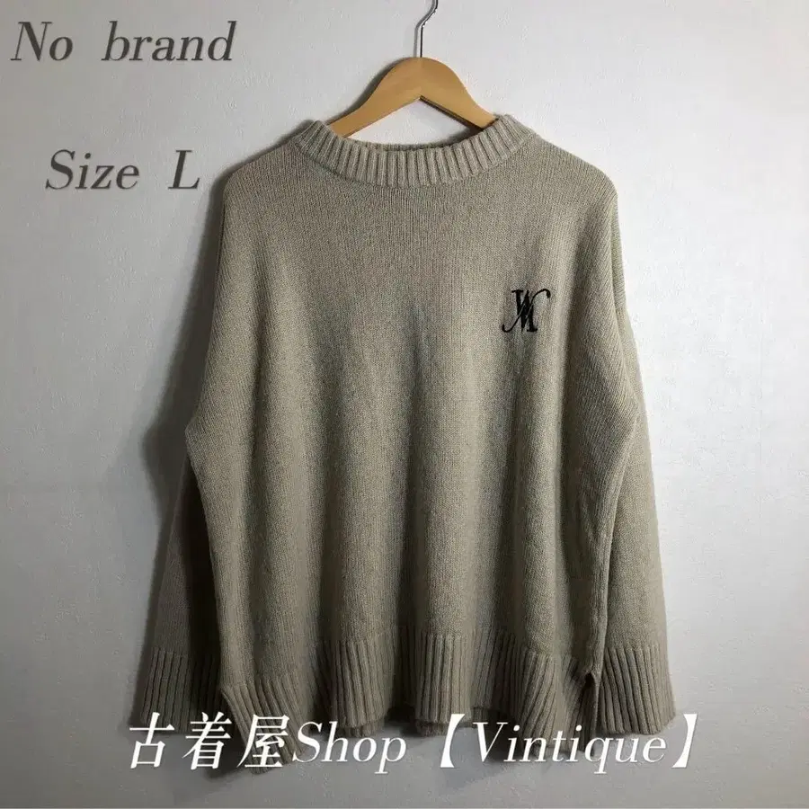 자수 로고 니트 스웨터 베이지 오버 사이즈 구제 의류