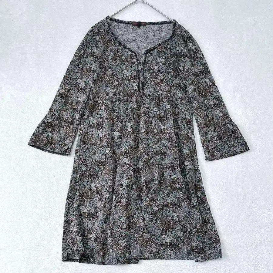 u129 스마트 핑크 튜닉 원피스 7부 소매 페이즐리 무늬 40