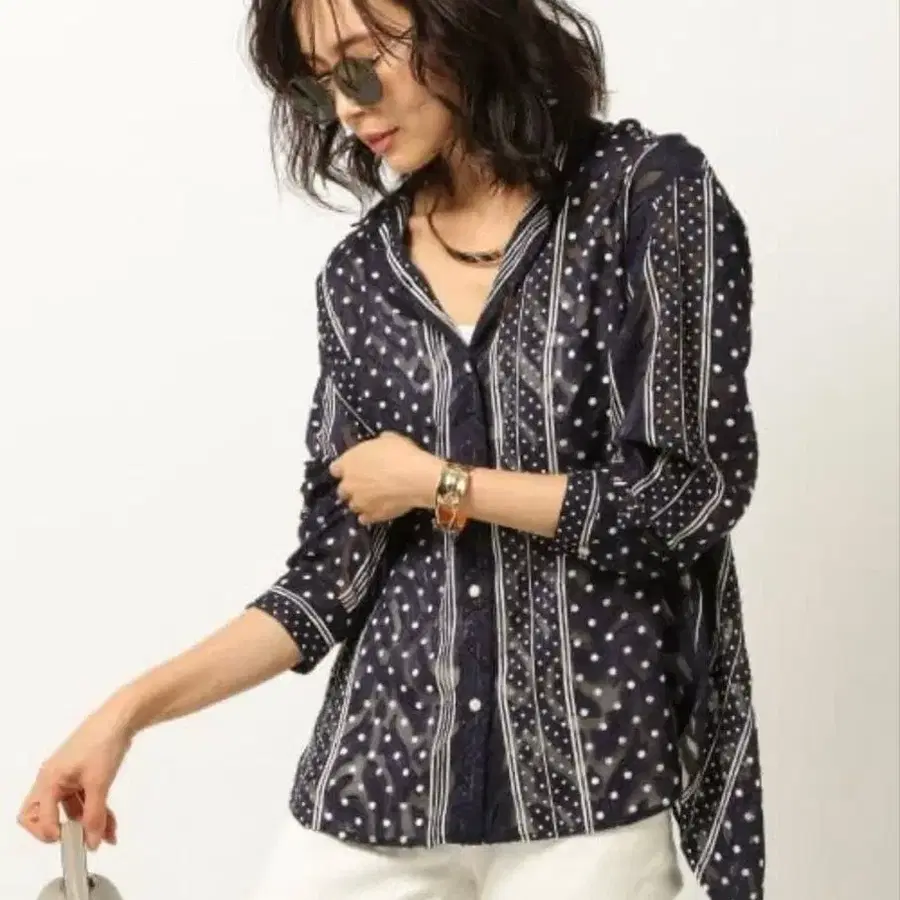 밴야드 스톰 네이비 도트 무늬 스트라이프 긴팔 셔츠