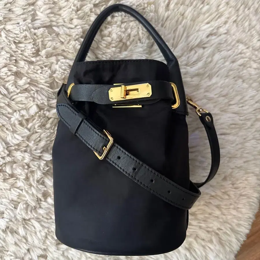 자동 번역되었어요. 원문보기시타 파란티카의 나일론 소재 블랙 숄더백, 골드 금장 장식 포함.