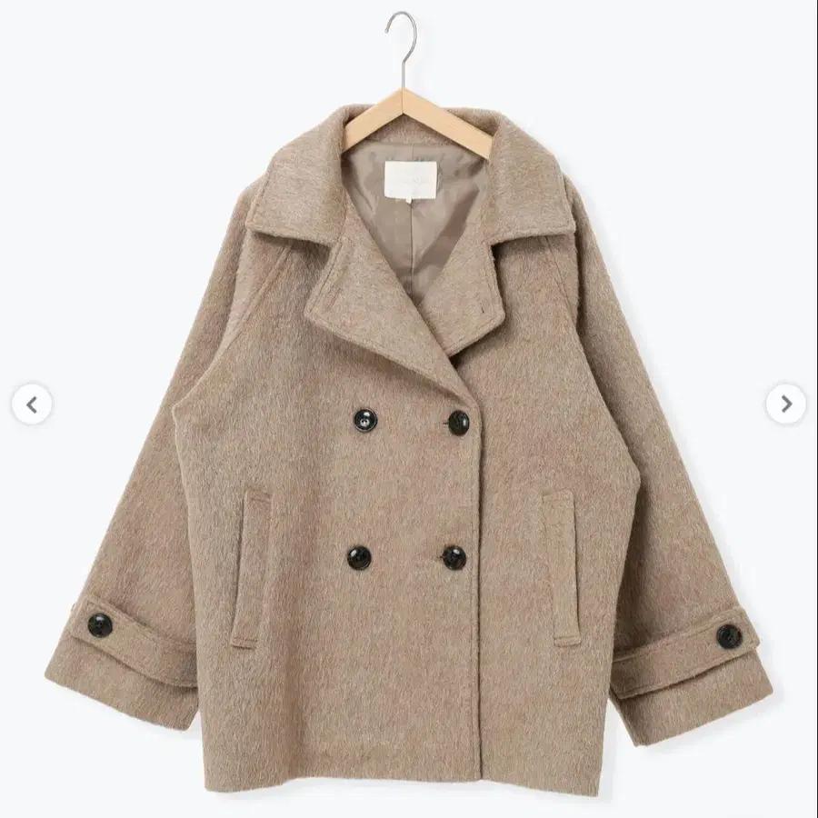 '부드러운 샤기 소재가 고급스러운 인상을 주는 더블 코트. 적당히 여유 있는 실루엣으로, 레이어드해도 깔끔하게 보입니다.