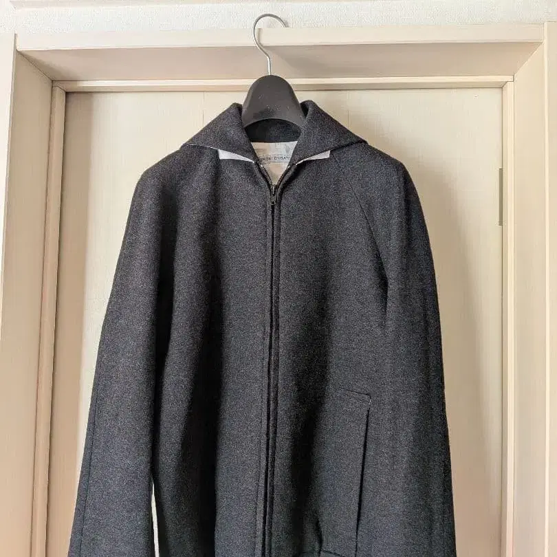 자동 번역되었어요. 원문보기다크 그레이 색상의 지퍼 달린 캐주얼 자켓, 사이드 포켓 포함.