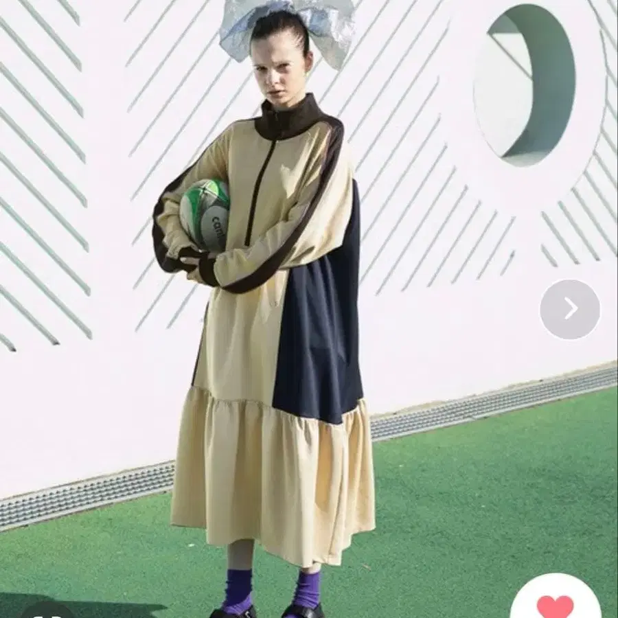 하프 지퍼 디자인과 절개 배색이 스포티한 무드를 살리는 롱 원피스입니다.