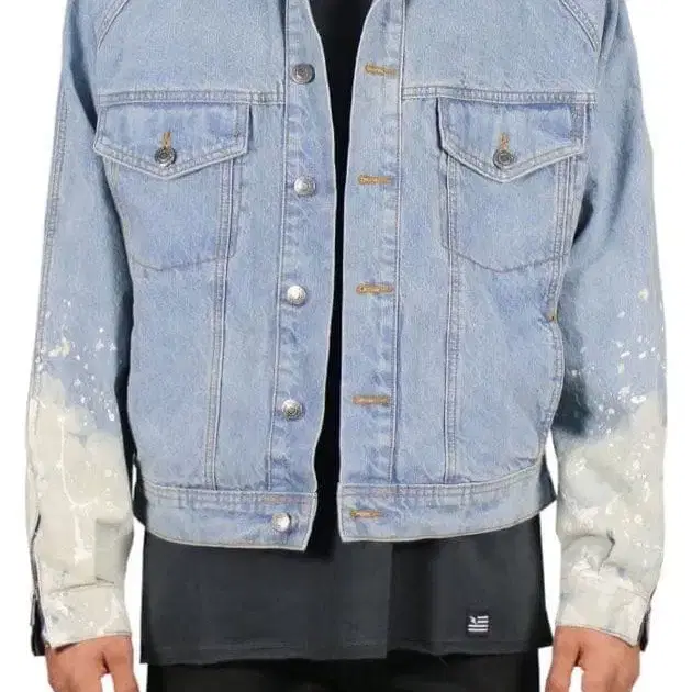 HYPER DENIM (하이퍼 데님)의 데님 자켓입니다. 로스앤젤레스 발 브랜드로, 소매에 페인트 가공이 된 유니크한 디자인입니다.
