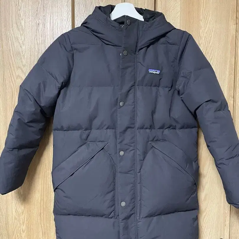 후드 부착형 다크 그레이 파타고니아 다운 자켓, XL 사이즈.