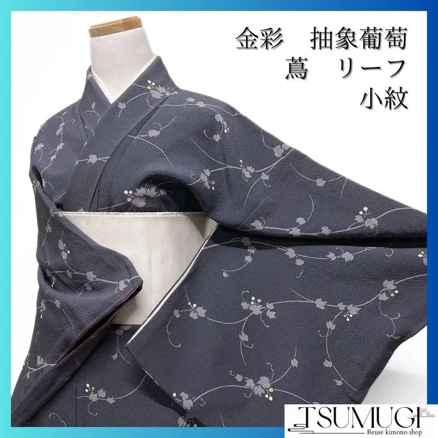 카치이로에 덩굴과 잎사귀에 금채를 더한 추상적인 포도 무늬가 멋스러운 디자인의 한 벌입니다.