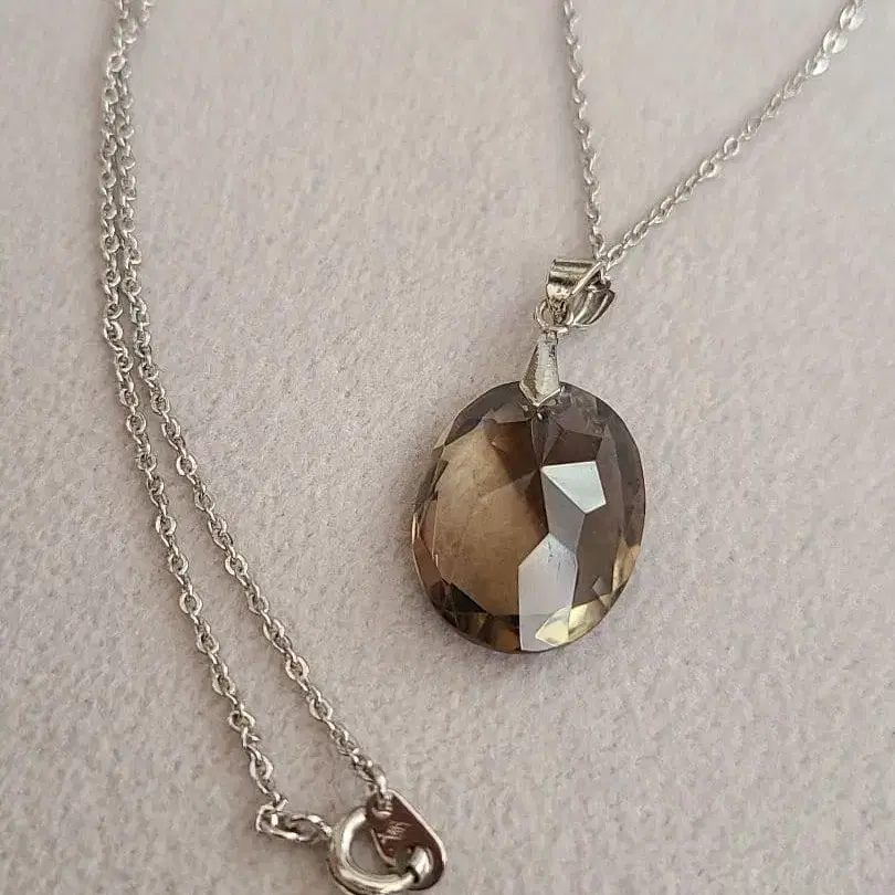 자동 번역되었어요. 원문보기스모키 쿼츠 SN 각인 브라운 패싯 컷 오벌 스톤 목걸이, 심플하고 엘레강트한 디자인.