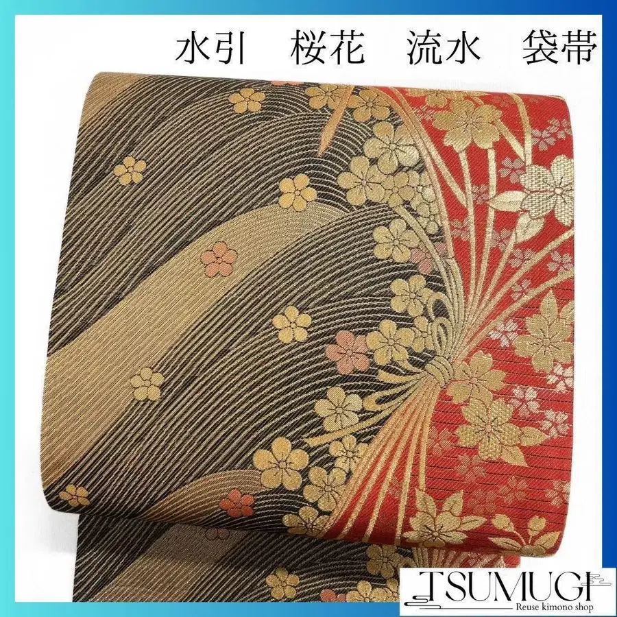 노시 유선 벚꽃 무늬 후쿠로 오비 후리소데 오비 기모노 113a p