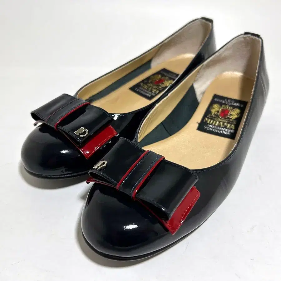 미사용급 MIHAMA 로우힐 펌프스 리본 에나멜 네이비 23cm
