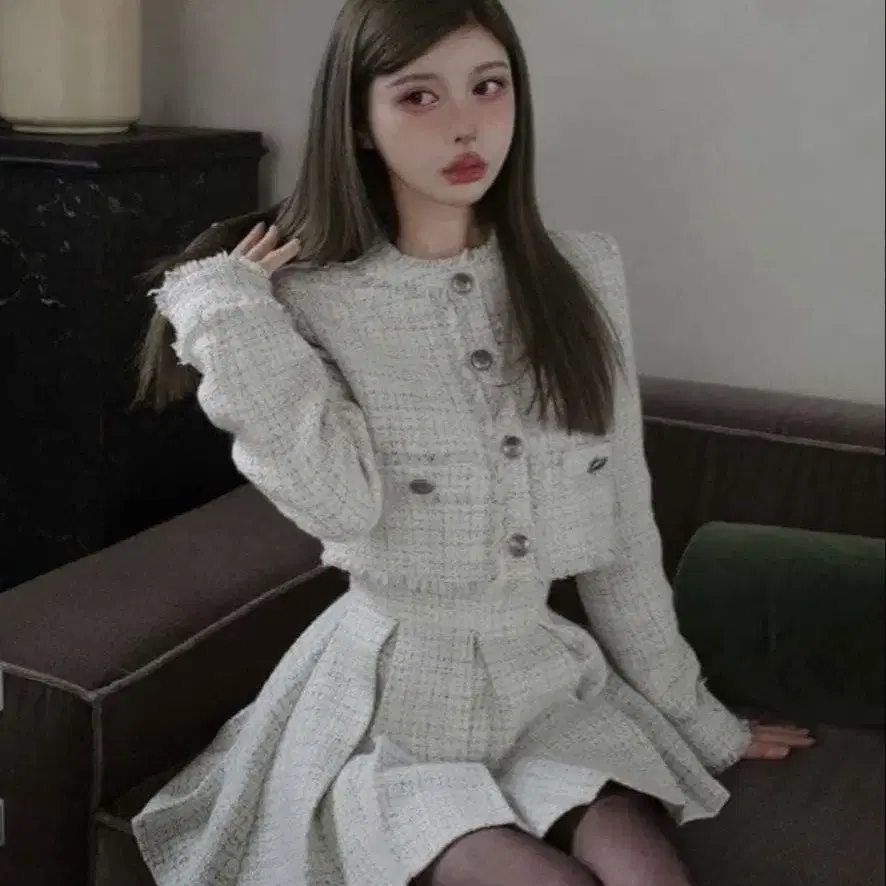 다리치 컴팩트 프린지 트위드 자켓 화이트 셋업 미사용 새상품