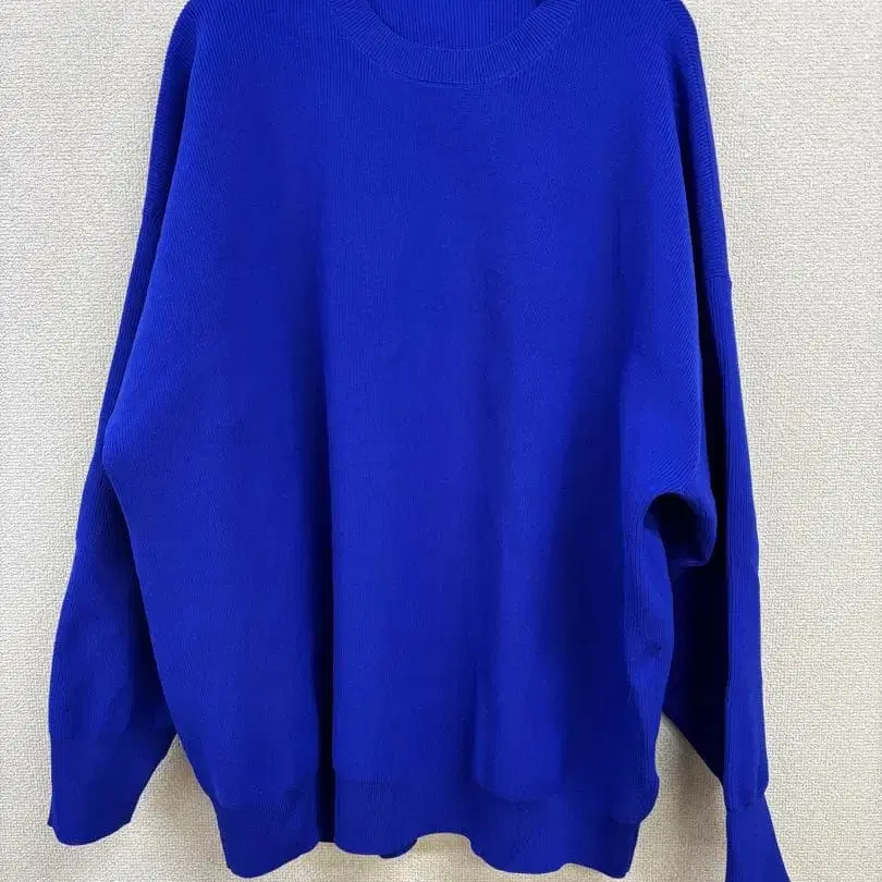 자동 번역되었어요. 원문보기선명한 파란색 긴팔 니트, 리브 디자인.