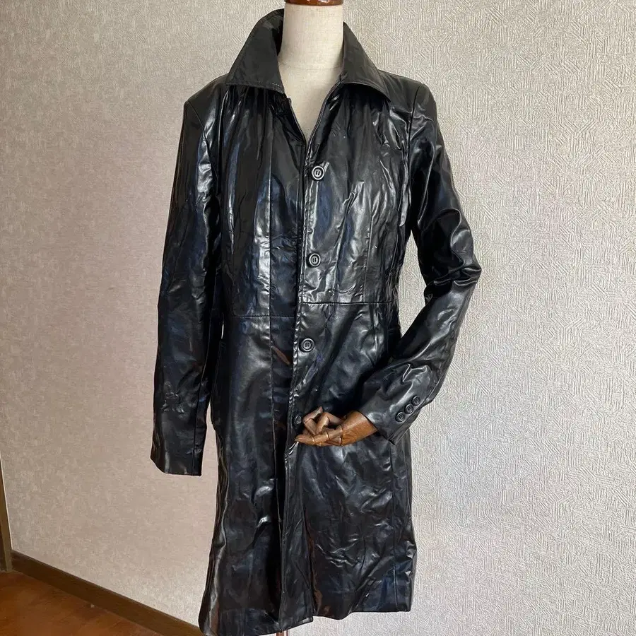 블랙 가죽 롱 코트