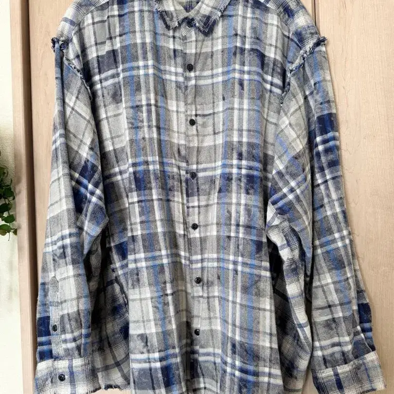 niko and - 절개 체크 BIG 셔츠 블루 F 리메이크풍