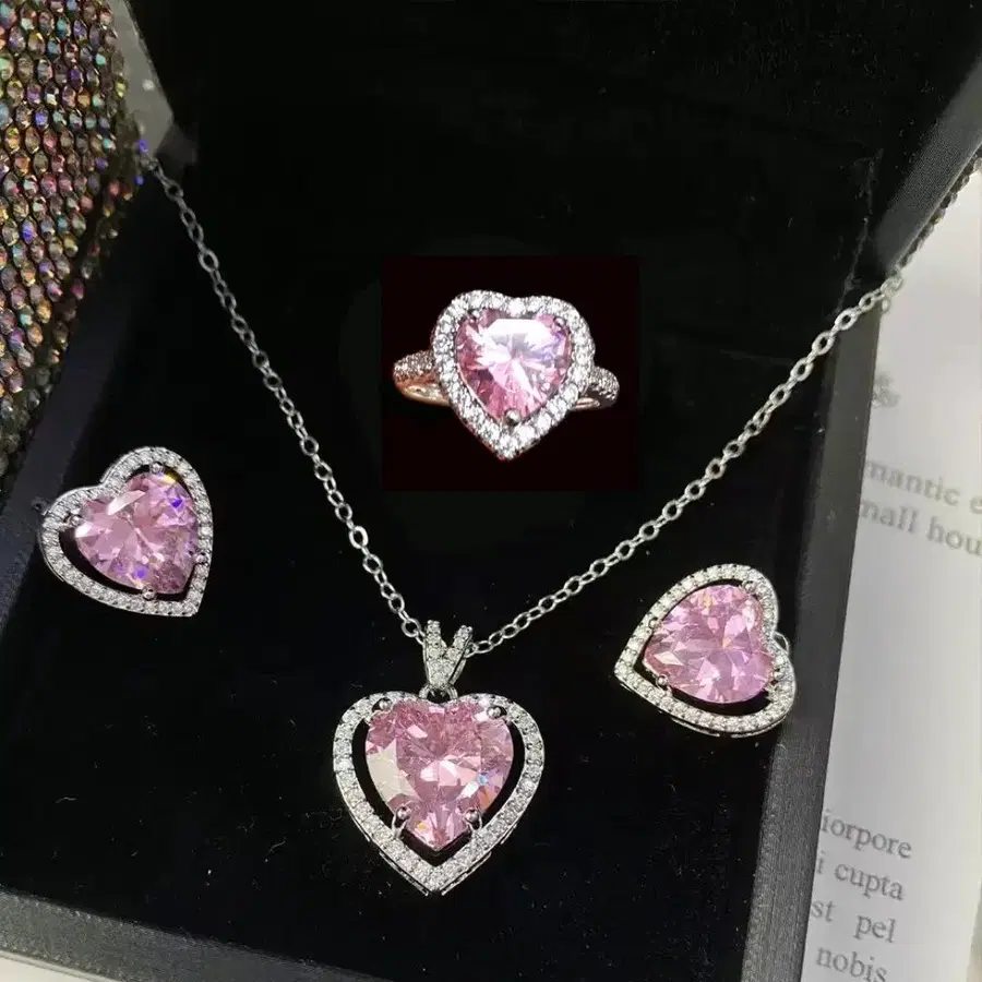13호~20호 3세트 반짝이는 하트 목걸이 반지 귀걸이 가느다란 약혼