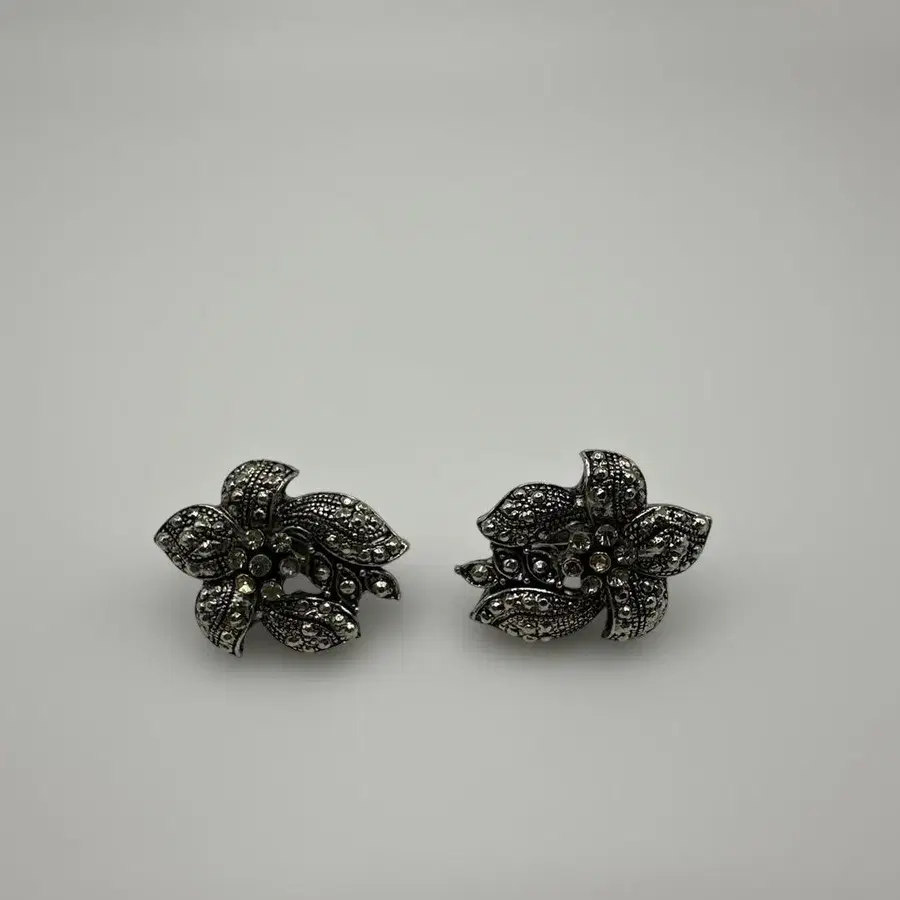 빈티지 꽃 모티브 실버 귀찌 스크류식