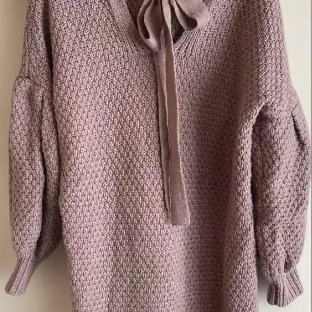 리본 포함 벌룬 슬리브 니트 스웨터 다크 핑크 F 사이즈