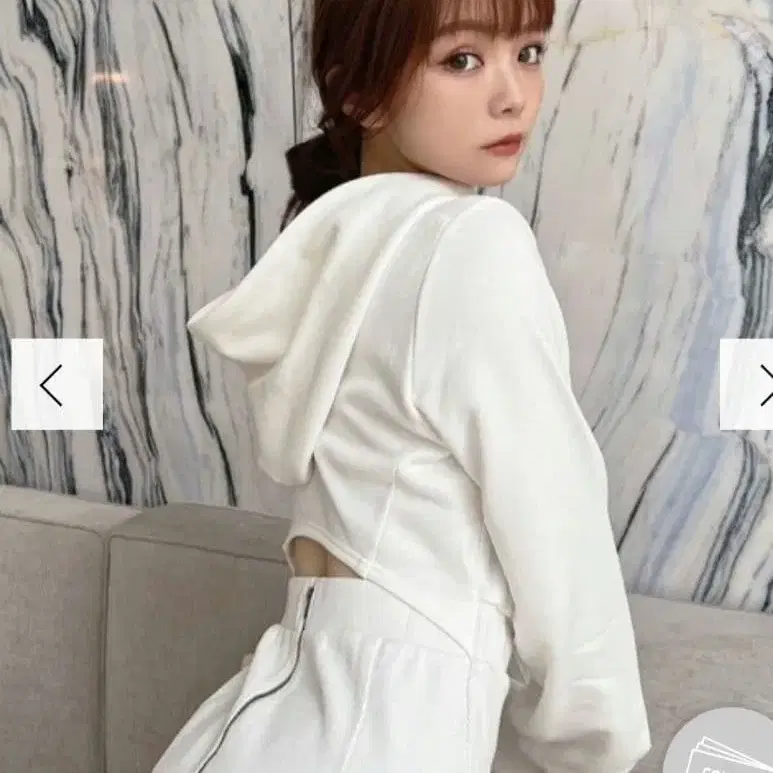 자동 번역되었어요. 원문보기후드 부착 화이트 후드티, 슬릿 디자인으로 캐주얼한 스타일에 최적.