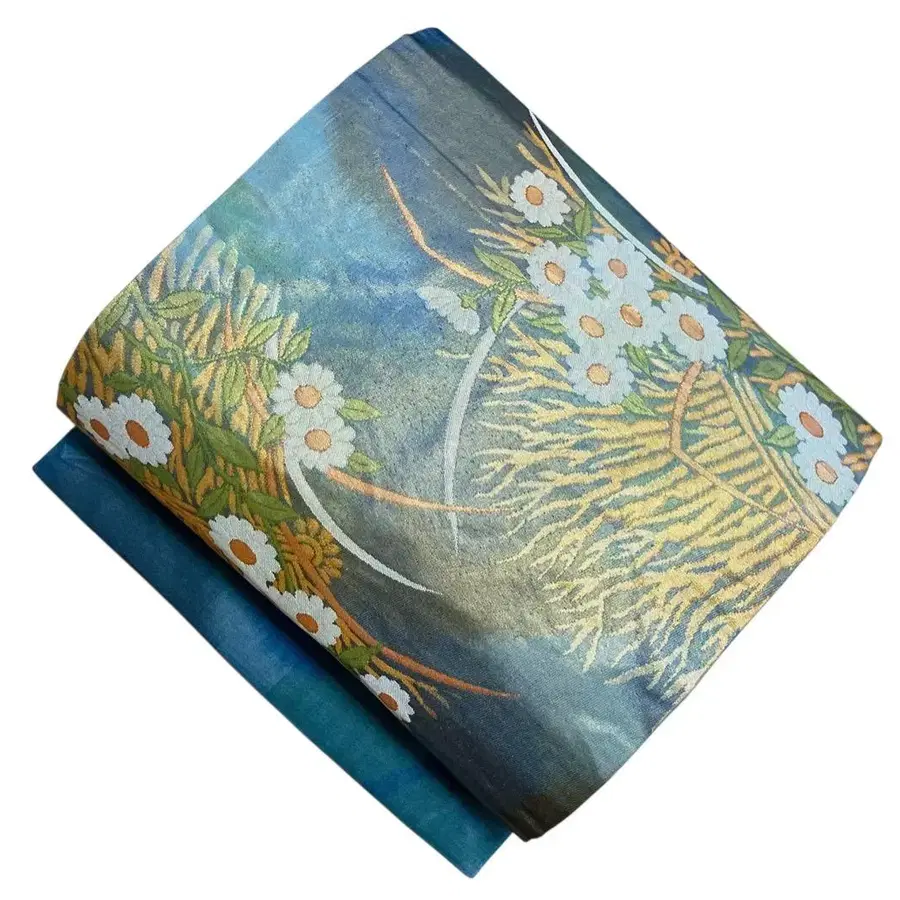 T9-6 나고야 오비 가지와 꽃무늬 순수 실크 기모노 오비 완성품