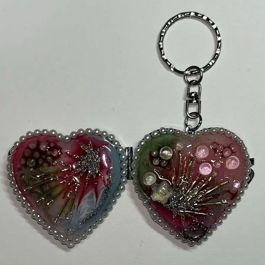 우주와 별을 테마로 한 하트 모양 거울 참입니다⟡.·