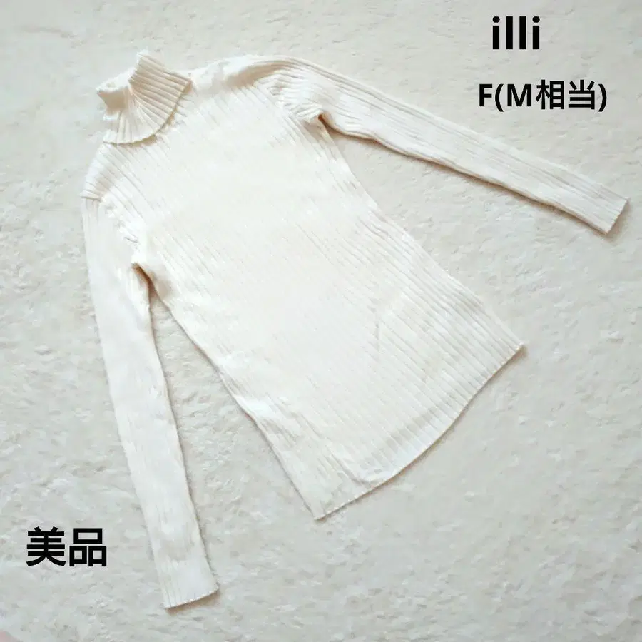 화이트 색상의 리브 니트 긴팔 스웨터, F(M 상당) 사이즈.