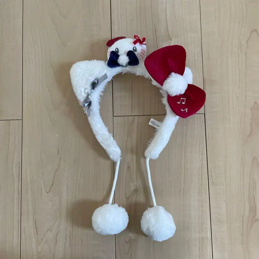 푹신한 소재의 화이트 색상 머리띠로, 리본과 음표 디자인이 포함되어 테마파크에 최적입니다.