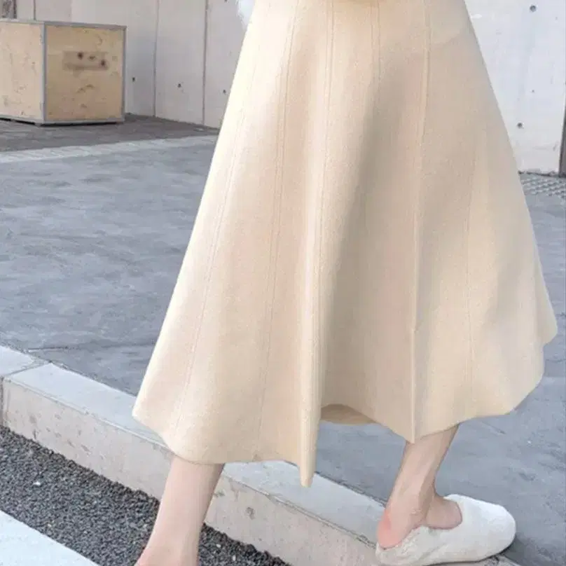 프리마젤 하이 게이지 니트 플레어 스커트 아이보리