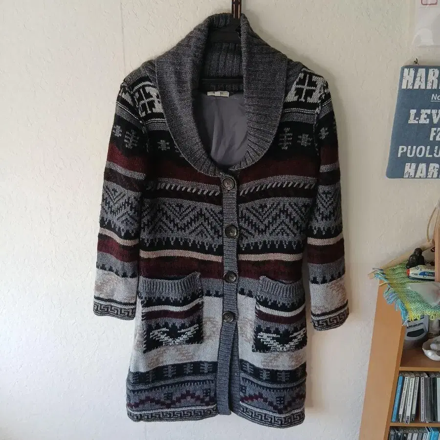 스카파 기하학 패턴 숄카라 가디건 니트 코트 38호
