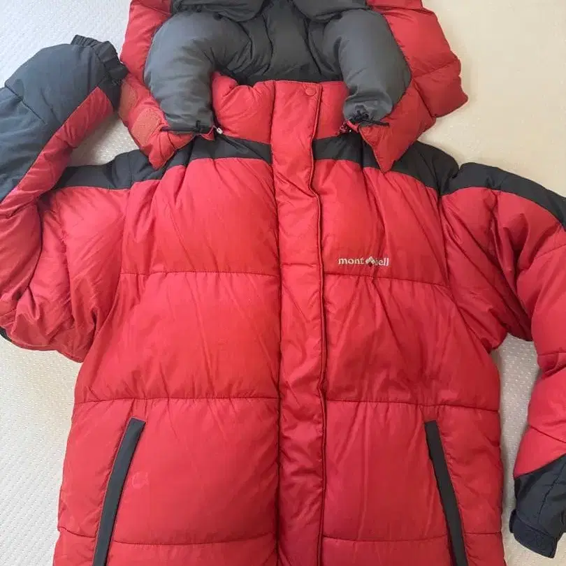 mont-bell 후드 부착 다운 자켓 빨간색/그레이