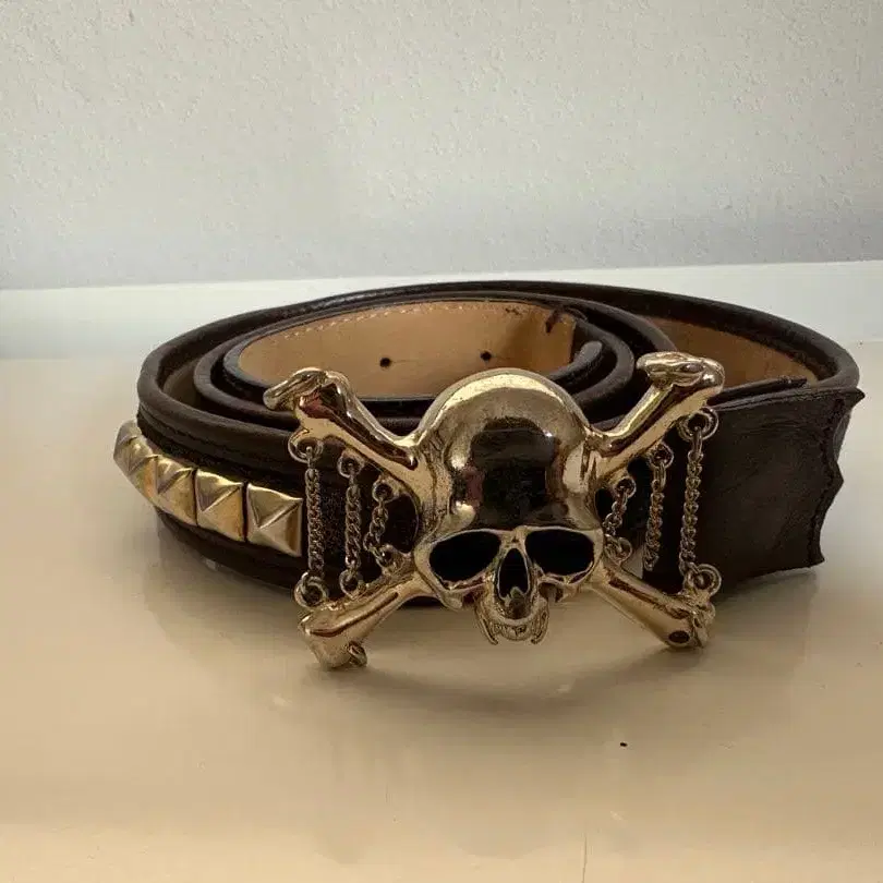 Roen 로엔 스컬 버클 스터드 가죽 벨트